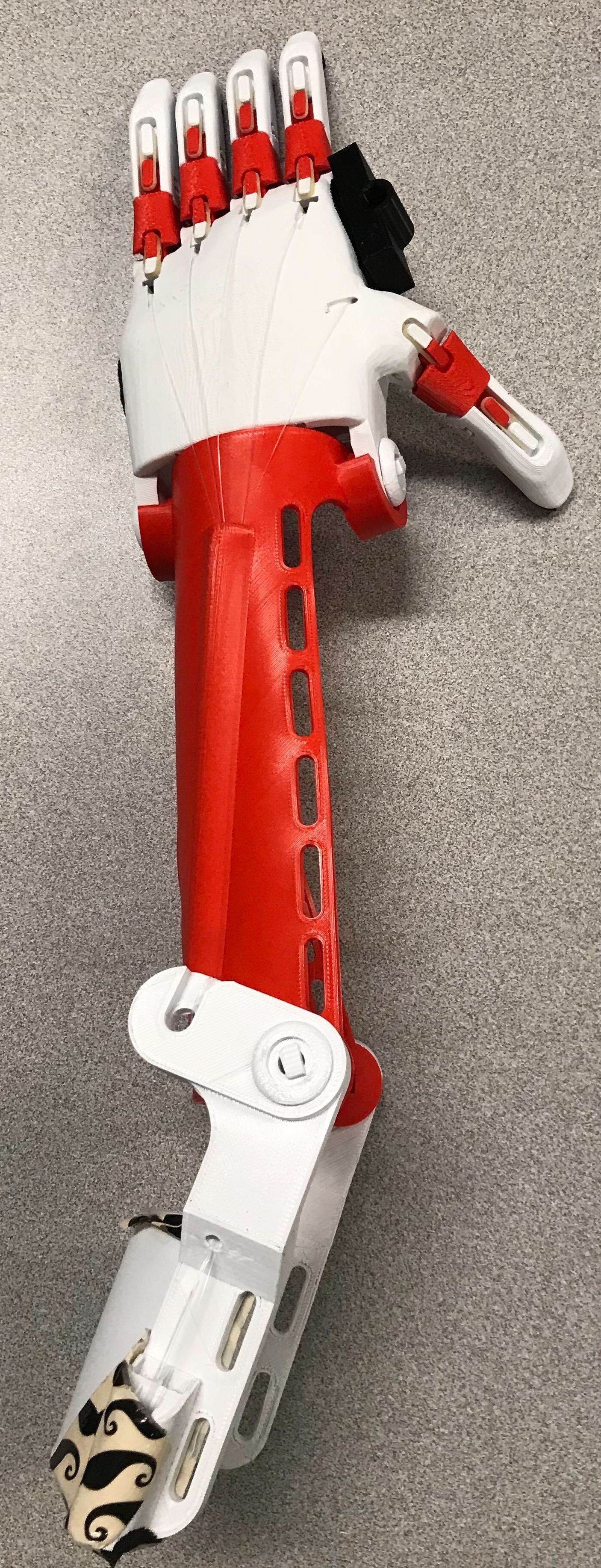 Started through our collaboration with e-Nable, an online global community, our students 3D printed and assembled custom forearm prosthetics, meticulously tailored to meet the exact size specifications of each patient. These prosthetics utilize mechanical actuation for joint movement and object gripping. Our mission is to provide an affordable and accessible solution for patients with limited financial resources, ensuring that everyone has access to life-enhancing technology.